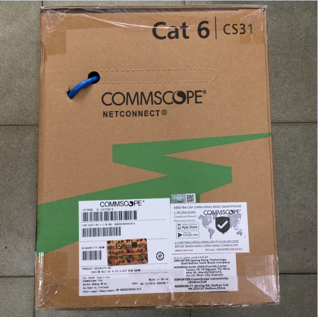 Cáp Mạng Commscope Cat6 UPT Blue 1427254-6 Gigabit Cable Type 4PR 23AWG 4 Pair UTP 1000FT Length 305M