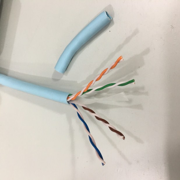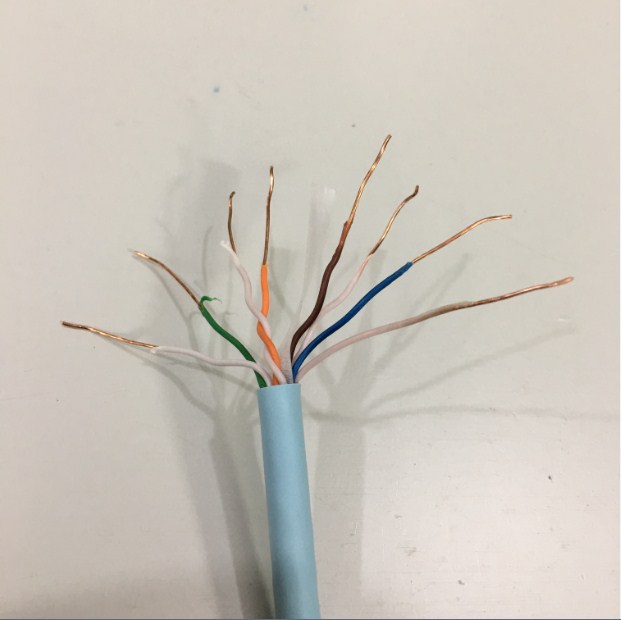Cáp đồng, loại 6 U/UTP , CM, 4 đôi, dây dẫn được xây dựng 23 AWG với lớp cách điện PE, xoắn theo cặp, ngăn cách bởi một dải phân cách và được bao phủ bởi một áo khoác PVC, màu xanh nhạt.