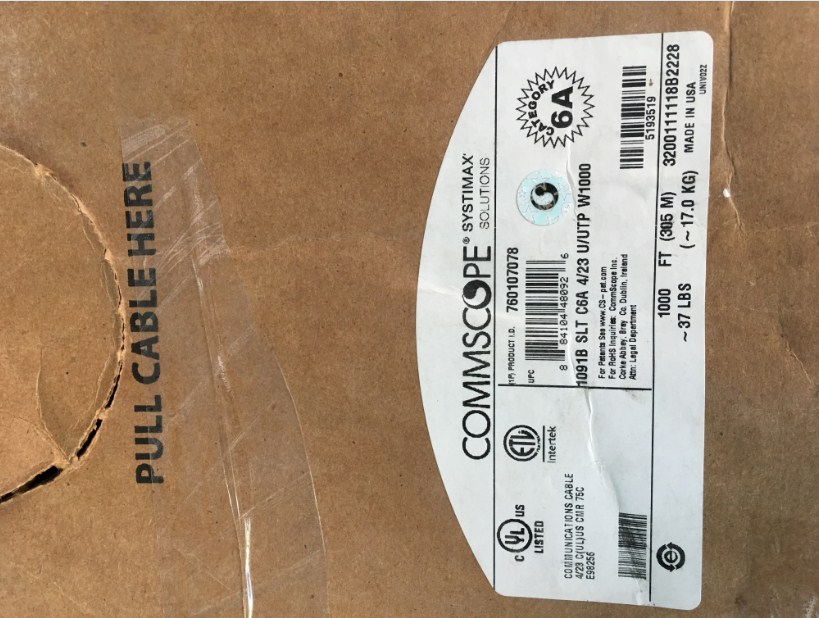 Cáp Mạng Commscope SYSTIMAX CAT6A U/UTP Jacket 760107078 GigaSPEED X10D® Cable Type 4PR 23AWG 4 Pair UTP 1000FT Length 305M