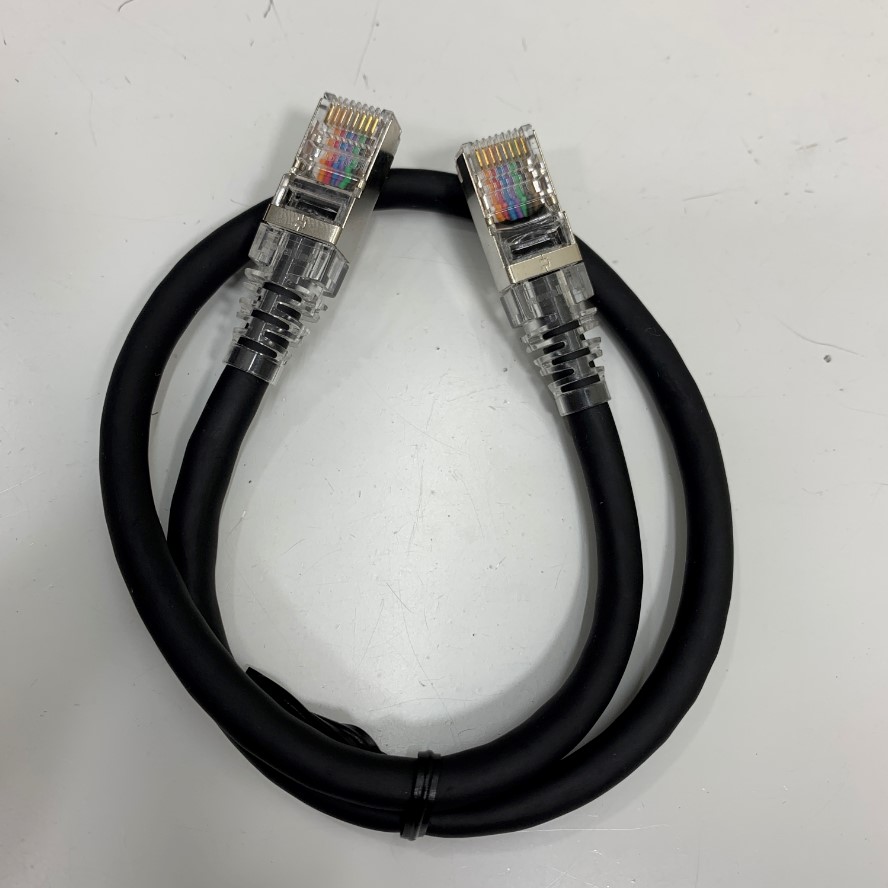 Cáp Mạng Công Nghiệp CAT5E Shielded Cable Ethernet RJ45 Gigabit Lan Network S/FTP PVC Black 24AWG Dài 0.5M 1.5ft For Servo, PLC, HMI, Ethernet Network Cable
