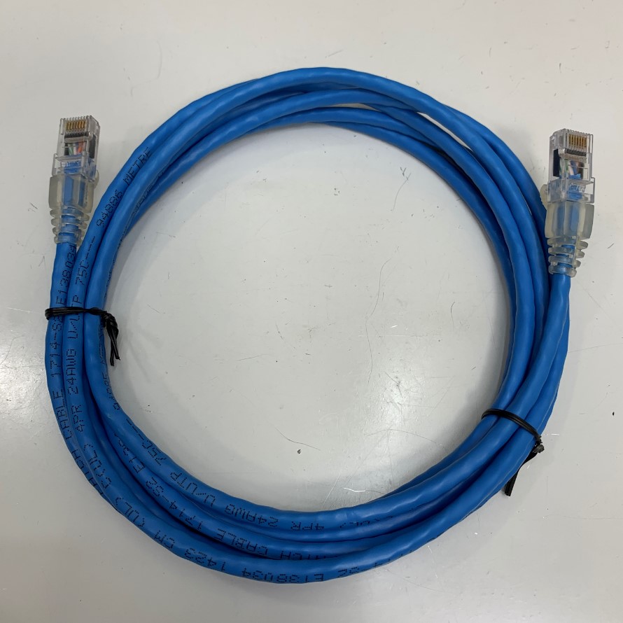 Cáp Mạng Công Nghiệp CAT5E U/UTP PVC UL CM Cable E138034 4PR Industrial Ethernet RJ45 Gigabit Lan Network PVC Blue 24AWG Dài 2.7M 9ft For Servo, PLC, HMI, Ethernet Network Cable