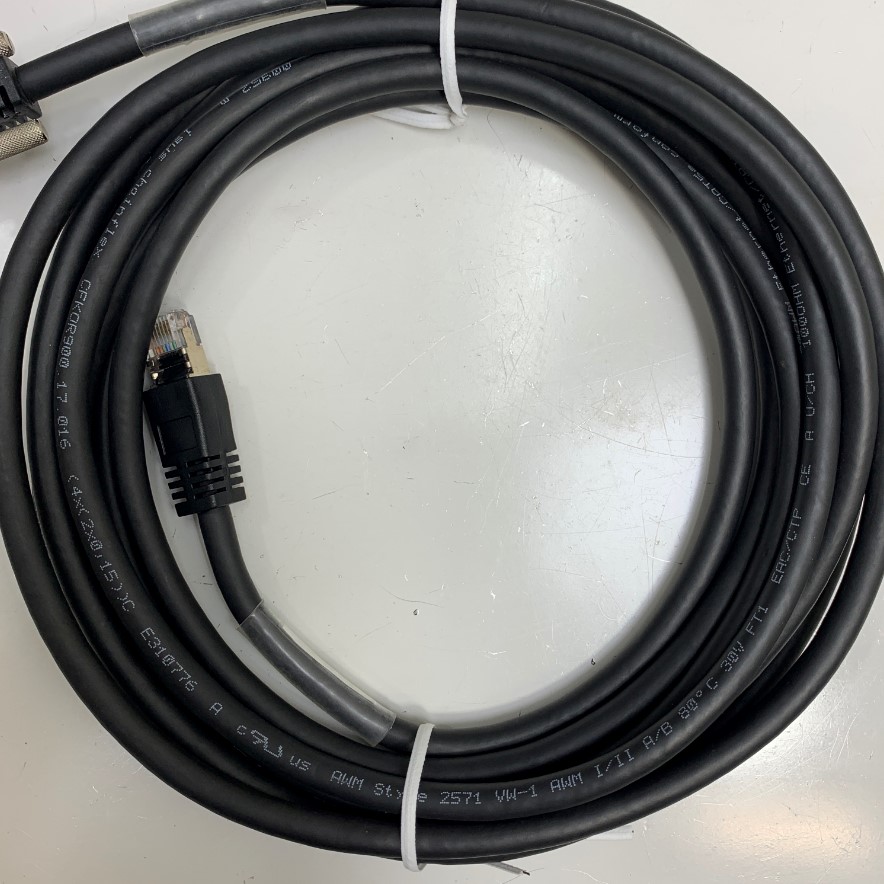 Cáp Mạng Công Nghiệp Dài 4M 13ft Gige Industrial CCD Camera RJ45 10 Gigabit Cable with Locking Screw IGUS ChainFlex CAT5E E310776 S/FTP 25AWG Black Cable For Machine Vision Cable