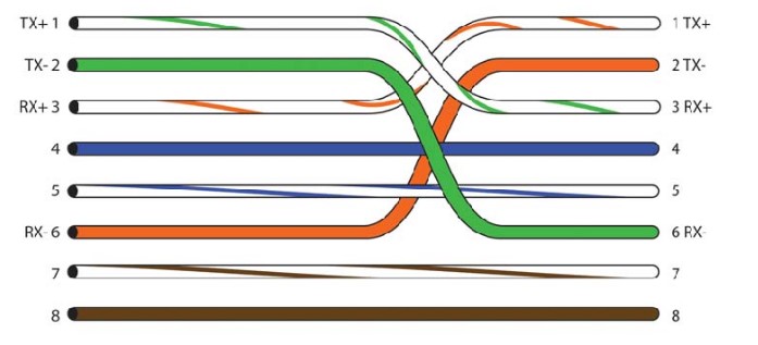 Straight Ethernet cable, supplied with straight to cross conversion adapter, 5 m (16.41 ft) length