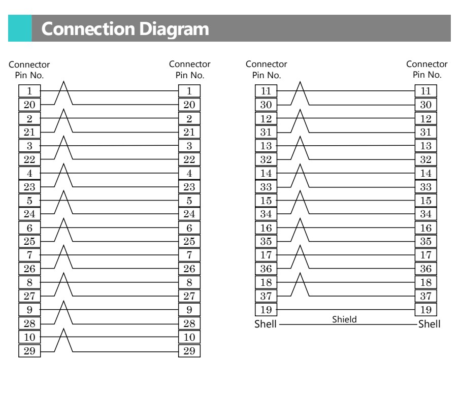 Pin-Out: Connection: 1-1 / 2-2 / 3-3 / .-. / .-. / 35-35 / 36-36 / 37-37 / Shield-Shield