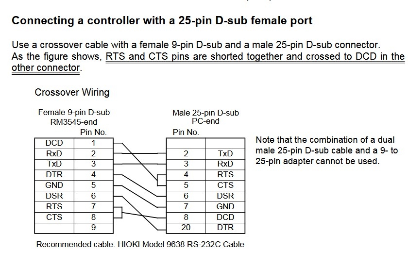 Cáp Máy Đo Điện Trở HIOKI Model 9638 RS-232C Cable DB9 Female to DB25 Male Black For Hioki RM3545 RM3545-01 RM3545-02 Length 1.8M