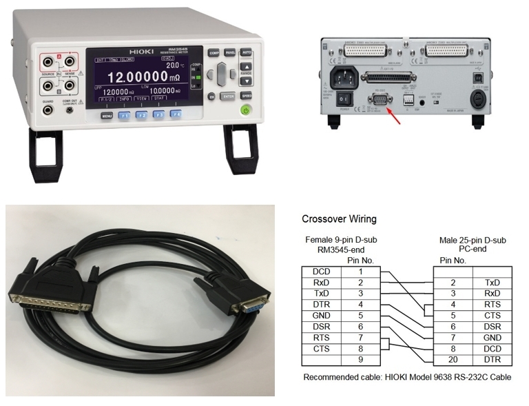Cáp Máy Đo Điện Trở HIOKI Model 9638 RS-232C Cable DB9 Female to DB25 Male Black For Hioki RM3545 RM3545-01 RM3545-02 Length 2M