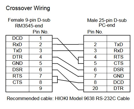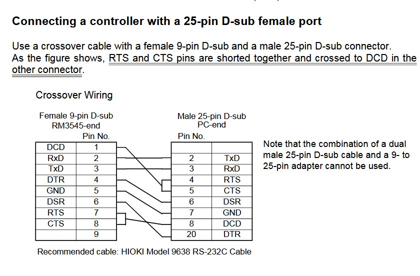 Cáp Máy Đo Điện Trở HIOKI Model 9638 RS-232C Cable DB9 Female to DB25 Male Black For Hioki RM3545 RM3545-01 RM3545-02 Length 5M