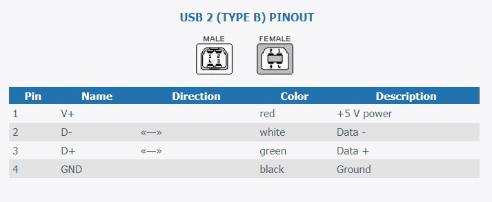 Rắc cắm thiết bị: USB 2.0 Type B chân cắm thẳng