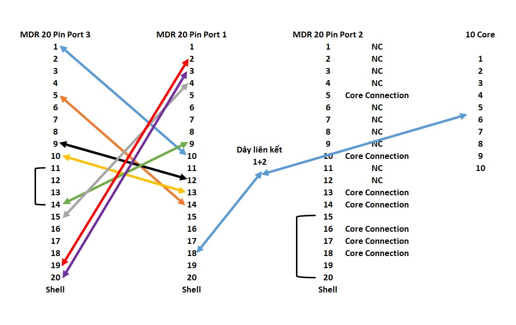 Cáp MDR Y Splitter Cable Dual 2 Port MDR 20 Pin to MDR 20 Pin + 10 Core Open End Dài 2M 0.5M For Servo Motor Cable