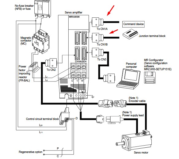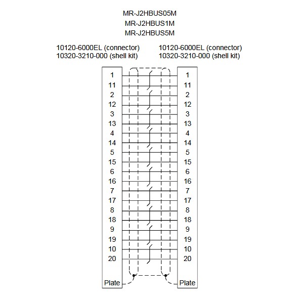 CN3, CN20 cable, interface terminal block (MITSUBISHI J5/J4 Servo Cable)
