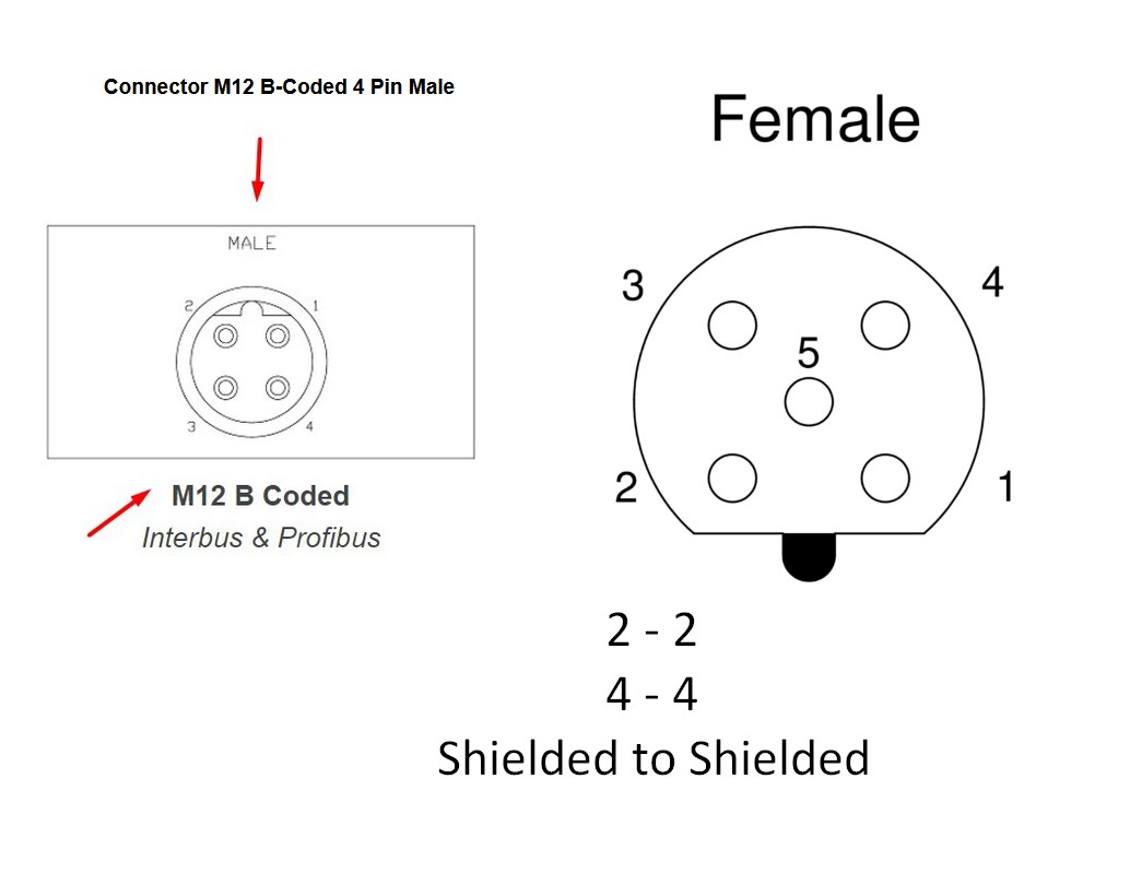 Connection type: 4-pin straight male M12 B-coded connector /  2-pin straight female M12 B-coded connector