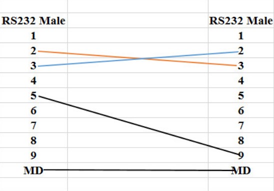 Cáp MYUNGBO 24AWGX2P RS232 DB9 Male to Male Cross Cable Dài 30Cm Connector KAS-09DH Jack Metal Gold Plated Shell Kit 9 Pin Serial Port For Số Hóa Dữ Liệu RS232 Communication