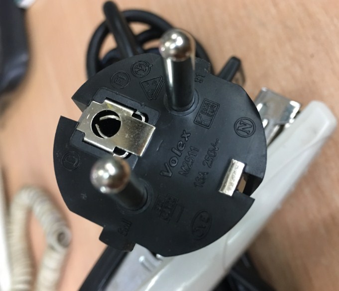 Phích cắm điện: Dây nguồn 2 chân tròn có tiếp địa chân cắm thẳng