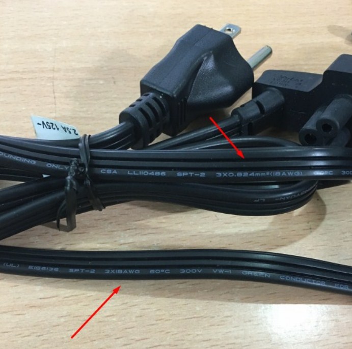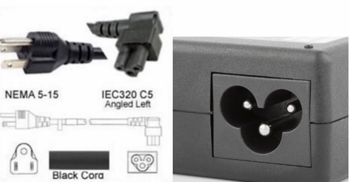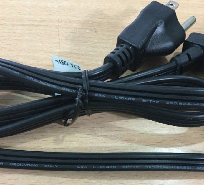 Cáp Nguồn Dẹt Laptop Chữ L Vuông Góc 90 Độ Right Angle Power Cord NEMA 5-15 Plug to IEC 60320 C5 Volex DLC5U3 America and Japan 2.5A 125V 3x0.824 mm² 18AWG Length 0.9M