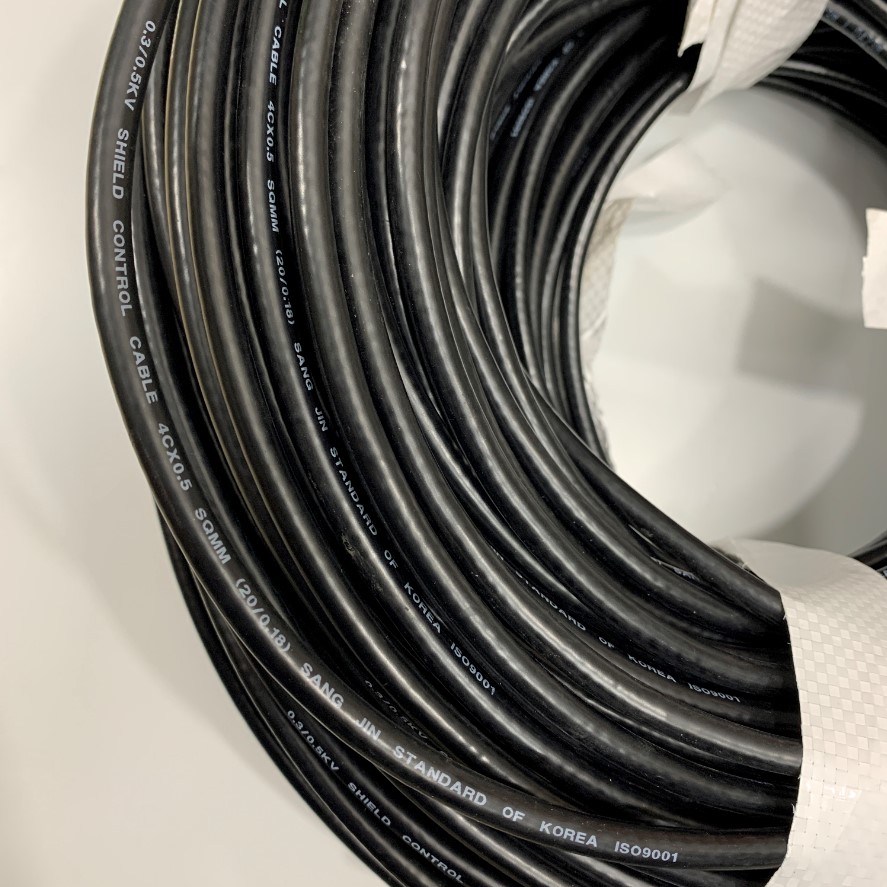 Cáp Nguồn Điều Khiển Chuyển Động SANG JIN 4 Core x 0.5mm² Shielded Control Cable 0.3/0.5kv 300/500V Black OD 7.0mm Length 200M For AC Servo Motor Power Cable in Korea