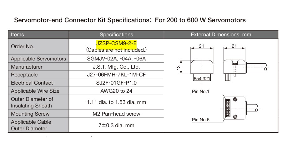 JZSP-CSM9-2-E Crimp Tool Connector Servo Motor Power Cable
