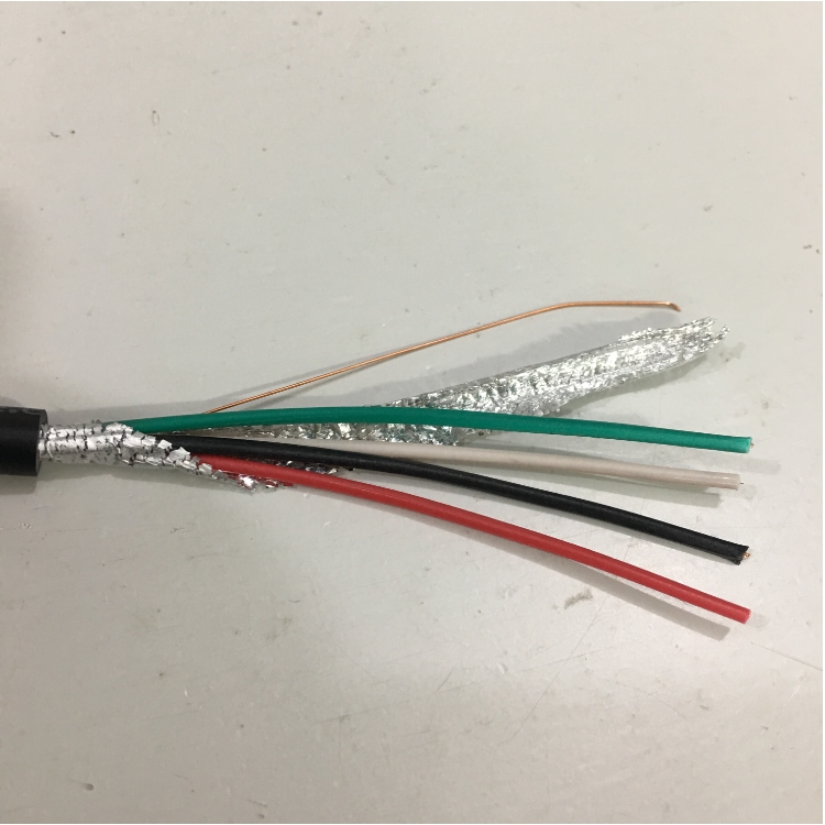 Thông số in nổi trên sợi cáp: USB SHIELDED HIGH SPEED CABLE 2.0 REVISION 28AWG/IP+26AWG/2C