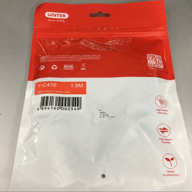 Thương hiệu: Cáp Nối Dài USB 2.0 A Male to A Female Extension Cable Chính Hãng Unitek Y-C416 Length 1.8M