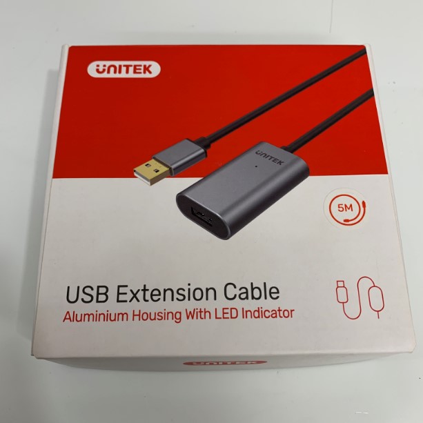 Cáp Nối Dài USB 2.0 Có IC Khuếch Đại Tín Hiệu + Rắc DC 5V Connector Size 3.5mm x 1.35mm Chính Hãng Unitek Y-271 Dài 5M Super Speed USB 2.0 Cable Extension Male to Female Data Transfer