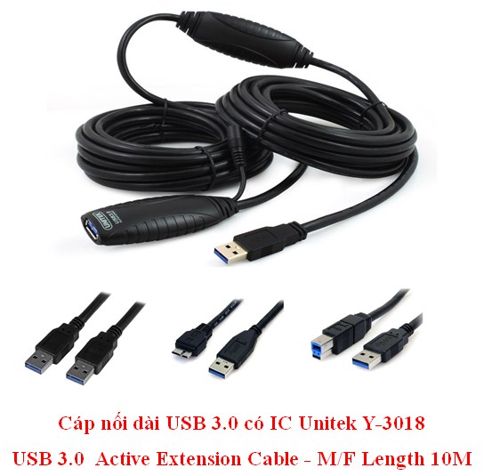 Cáp nối dài USB 3.0 có IC Unitek Y-3018 USB 3.0 Active Extension Cable - M/F Length 10M