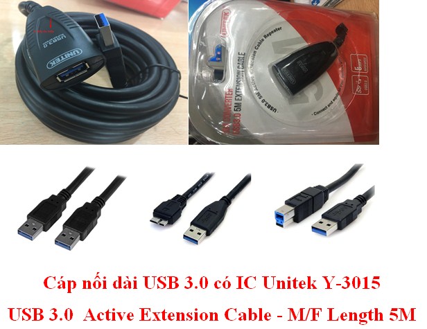 Cáp nối dài USB 3.0 có IC Unitek Y-3015 USB 3.0 Active Extension Cable - M/F Length 5M Cáp nối dài USB 3.0 có IC Unitek Y-3015 USB 3.0 Active Extension cáp dùng nối dài cho máy in máy Photocopy,Scaner, ổ cúng cắm ngoài với kết nối USB 3.0 cung cấp một kết nối, chất lượng cao bền nào khai thác hết khả năng của chuẩn USB 3.0. Được thiết kế cho các kết nối thiết bị USB SuperSpeed thế hệ tiếp theo, các 5M IC Unitek Y-3015 USB 3.0 cáp cung cấp một thông lượng lên đến 5Gbps khi được sử dụng với một máy chủ lưu trữ USB 3.0 và thiết bị - một đáng kinh ngạc 10x khả năng của USB 2.0 (480Mbps). 5M IC Unitek Y-3015 USB 3.0 của chúng tôi tính năng 3,0 cáp chất lượng cao Shielded Twisted Pair (STP) xây dựng, giúp đỡ để ngăn chặn nhiễu điện từ và đảm bảo thông tin liên lạc dữ liệu đáng tin cậy.