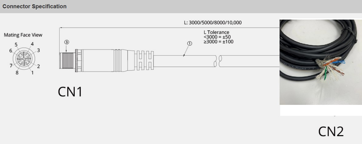 Connector Specification M12EN-M8SR Cable M12 A-Coded 8 Pin Male to 8 Core Open End