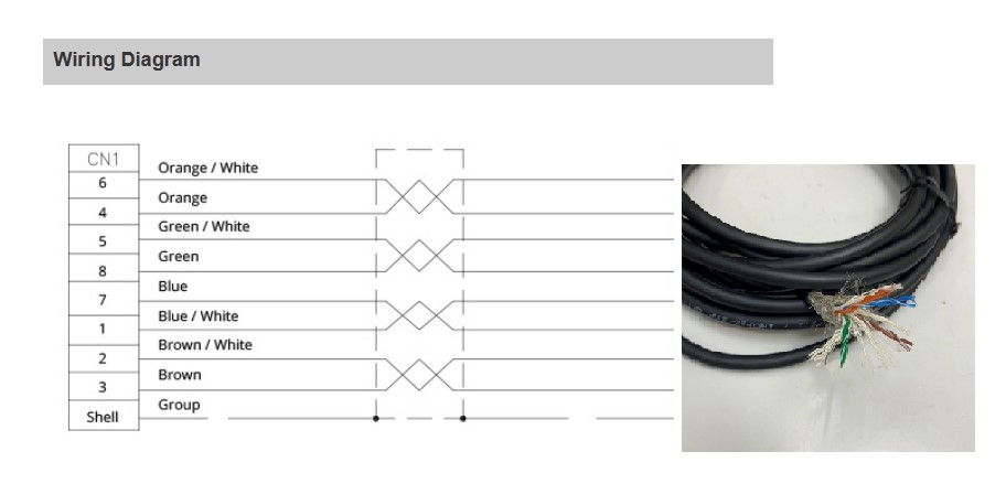 Wiring Diagram M12EN-M8SR Cable M12 A-Coded 8 Pin Male to 8 Core Open End