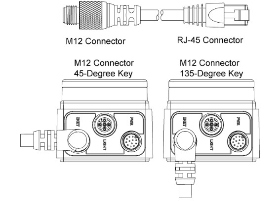 Connector(s) A: M12 8 Pin Male X-Coded 90° right angled connector