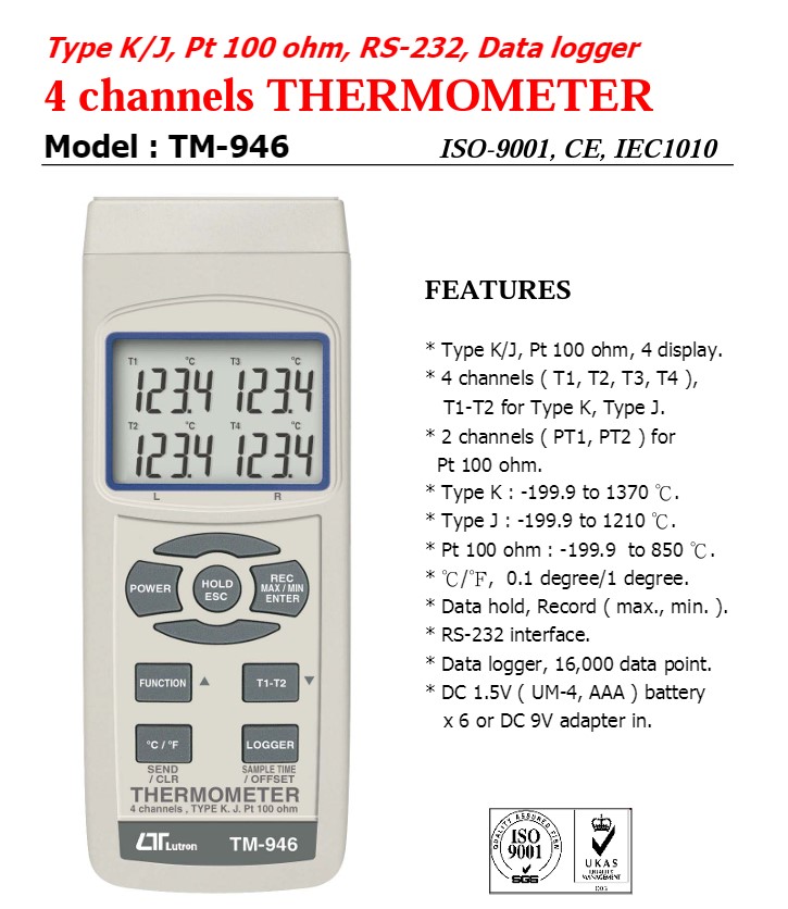 Máy đo nhiệt độ 4 kênh LUTRON TM-946