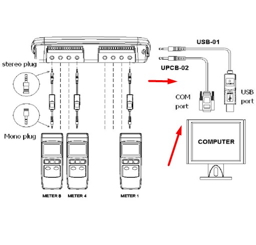 Cáp RS-232 Cable UPCB-02 Interface 3.5mm Audio Jack 2 Lever to DB9 Female Communication Serial Data Dài 1.8M For Máy Đo Từ Trường Meter Lutron Instruments