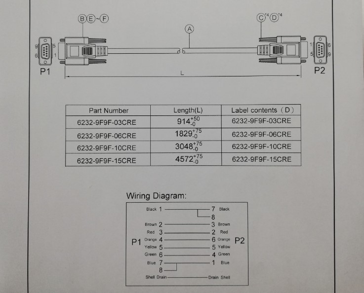 Cáp RS-232C 6232-9F9F-06CRE Communication Cross Link Data Transfer 6Ft Dài 1.8M Shielded Cable DB9 Female to Female For All Port RS-232C Industrial PLC Programming and Computer