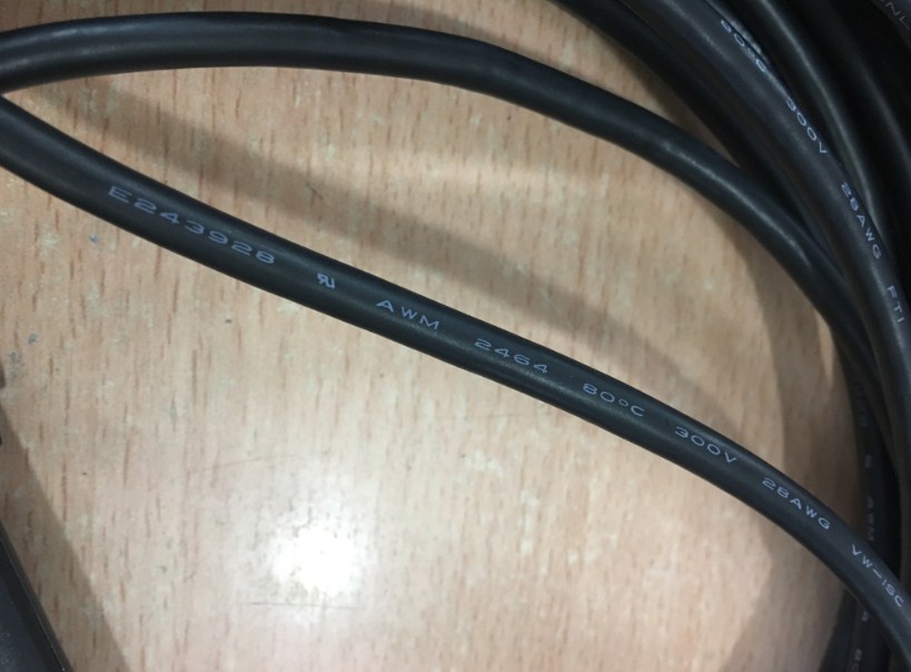 Thông số in nổi trên sợi cáp: E243928 AWM 2464 80°C 300V 28AWG VW-ISC JINLIANLI AWM I/II A/B 80°C 300V 28AWG FT1