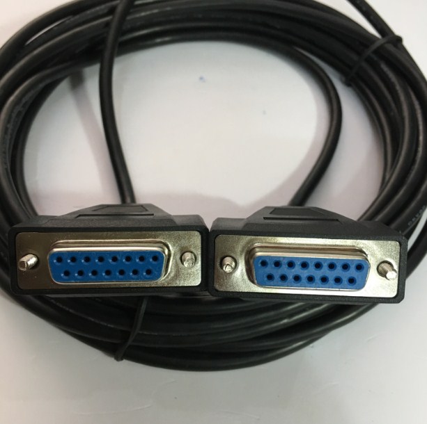 Cáp RS232C Chuẩn Công Nghiệp 15 Chân 2 Hàng Âm Âm Cổng Song Song Nối Tiếp D-SUB DB15 Female to DB15 Female 2 Row 15Pin 28AWG Cable Black Length 5M