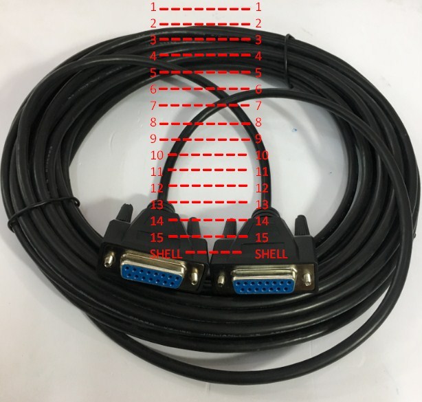 Tên cáp: Cáp RS232C D-SUB 15 Chân Hai Hàng Âm DB15 Female to DB15 Female 2 Row 15Pin 28AWG Multi-Core Cable Black Length 8M