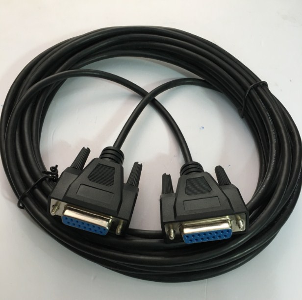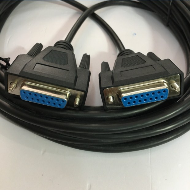 Cáp RS232C Chuẩn Công Nghiệp 15 Chân 2 Hàng Âm Âm Cổng Song Song Nối Tiếp D-SUB DB15 Female to DB15 Female 2 Row 15Pin 28AWG Cable Black Length 8M