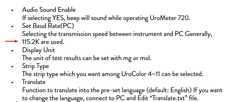 Selecting the transmission speed between instrument and PC Generally, 115.2K are used