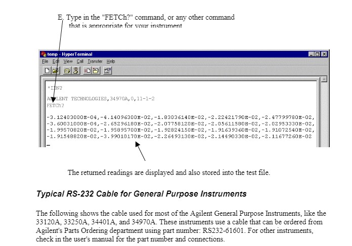 The table below outlines the RS-232 configuration at the E4418B/E4419B power meter.