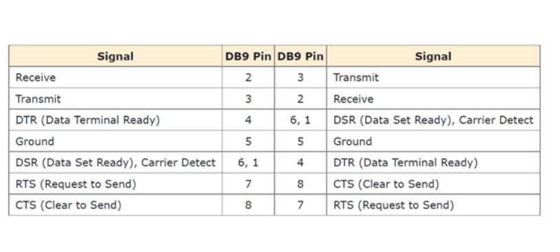 Pin to pin wired Crossover Serial Cable (pinout : 2-3, 4-6, 7-8, G-G)