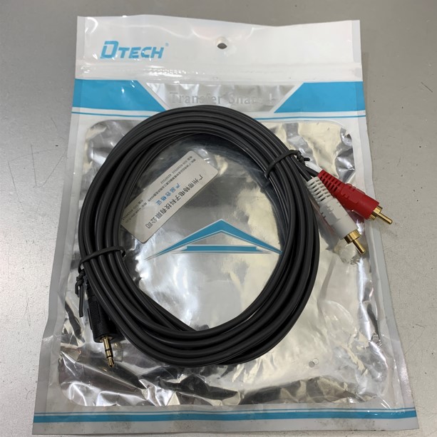 Cáp Tín Hiệu Âm Thanh Phòng Họp Hội Trường Audio Cable 3.5mm Male to 2x RCA Male Chĩnh Hãng Dtech DT-6212 Black Length 3M