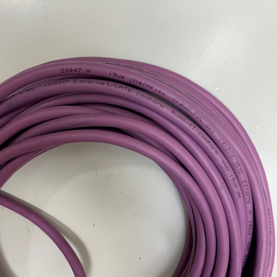 Cáp Truyền Dữ Liệu Mạng Công Nghiệp Dài 15M 50ft IGUS CHAINFLEX CFBUS-PVC-049 Cable CAT6 Ethernet Jacket Purple Shielded E310776 26AWG 4PR 4x2x0.15mm² OD 7.5mm For Gige Industrial Camera, Encoder, Robot, Bus Cable