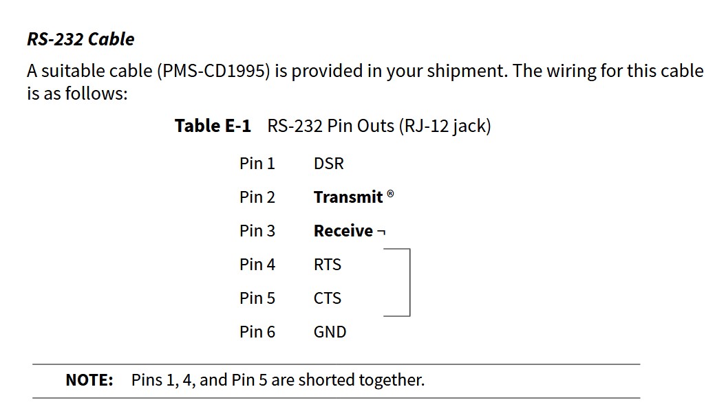 P/N: PMS-CD1995 RS-232 Cable