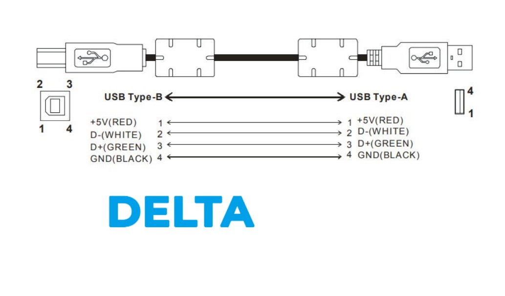 Cáp UC-PRG030-02A Dài 3M 10ft Delta HMI/PLC Communication Data witch Computer Shielded Cable USB 2.0 Type A Male to Type B Male White E477146