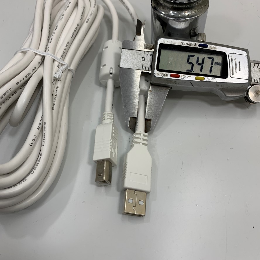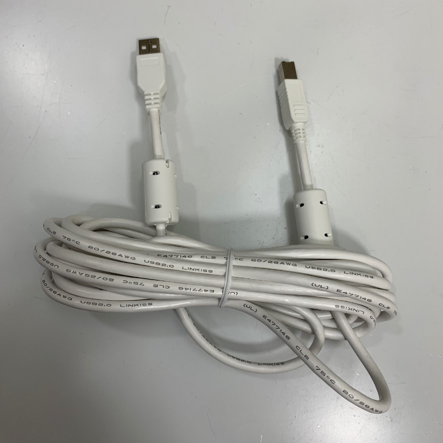 Cáp USB 2.0 Type A Male to Type B Male Dài 5M 17ft White LINKISS E477146 UL CL2 75°C 20/26AWG Shielded Cable 2.0 For Printer Scanner, Epson, HP, Canon and Servo Driver/HMI/PC
