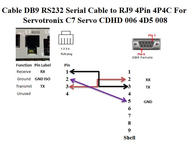 DB9 to RJ9 4P4C RS232 Serial Cable for Servotronix C7 Servo CDHD 006 4D5 008