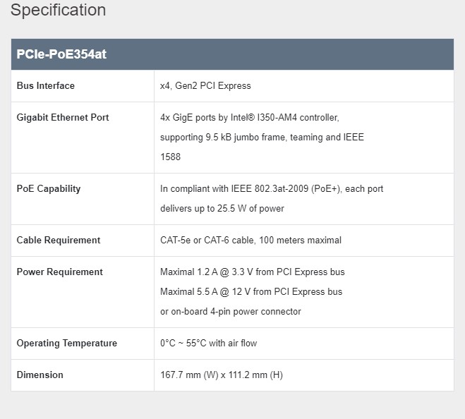 Card Mạng 4 Port Lan Gigabit Ethernet GBE POE PoE354at Machine Vision PCI-E X4 Neousys Tech For Máy Tính Công Nghiệp Advantech Industrial Computers