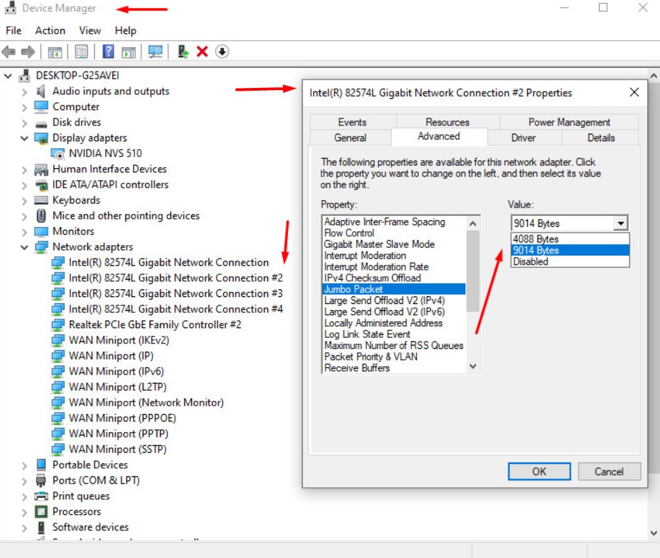 Intel 82574L Chipset 4 Port Gigabit Network Jumbo Packets up to 9014 Bytes