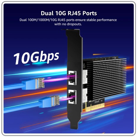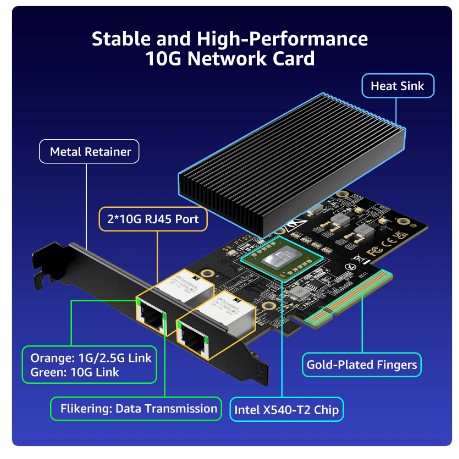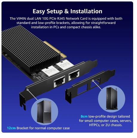 Card with 10Gbps Dual RJ45 Ports, Intel X540-T2 Conrtoller, VIMIN 10Gb Ethernet Adapter Card Compatible with PCI Express X8, X16 8Cm Low Profile Mini ITX Cases