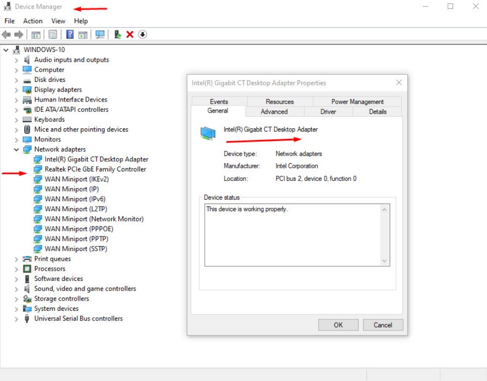 Intel(R) Gigabit CT Desktop Network Ethernet 10/100/1000