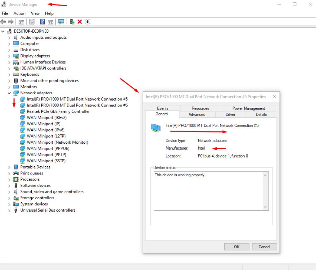 Intel (R) PRO/1000 MT Dual Port Gigabit Ethernet 10/100/1000