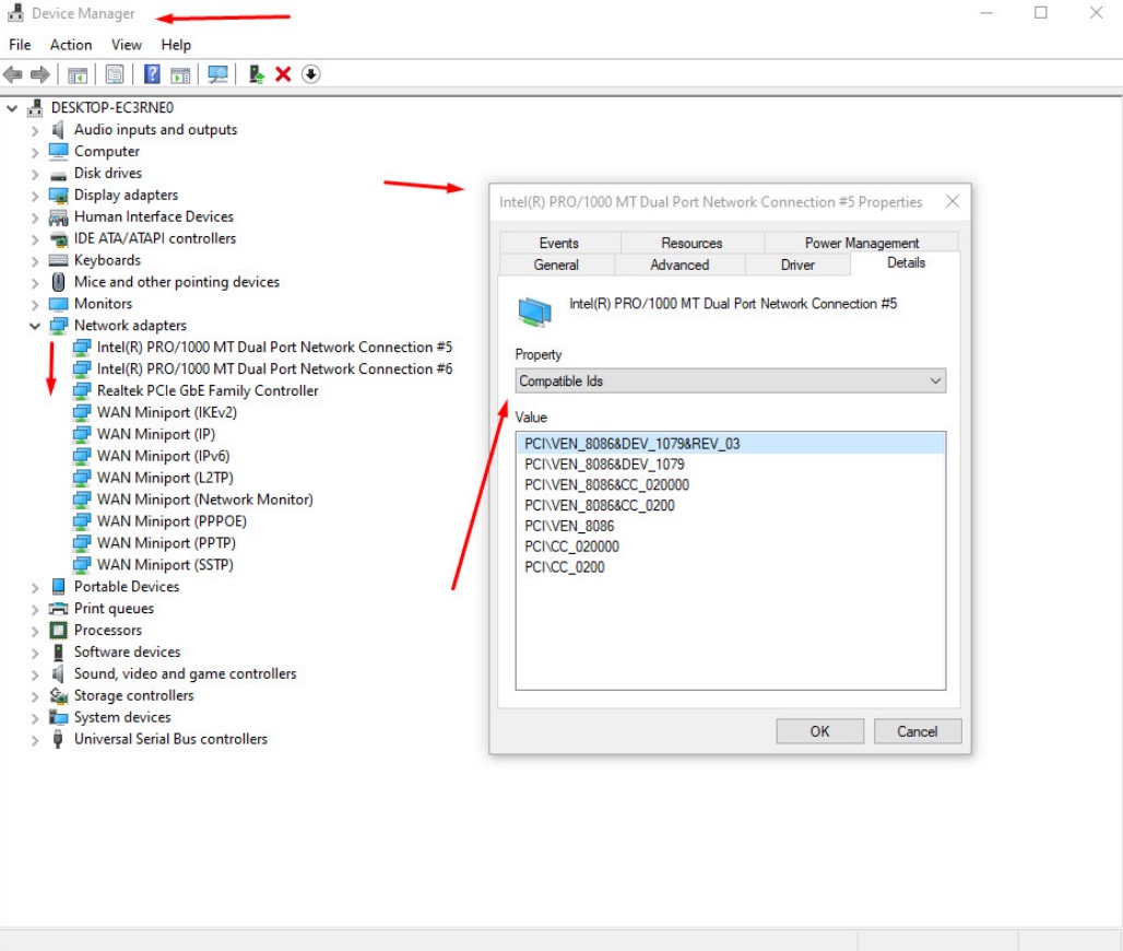 To check the hardware IDs for your network adapter
